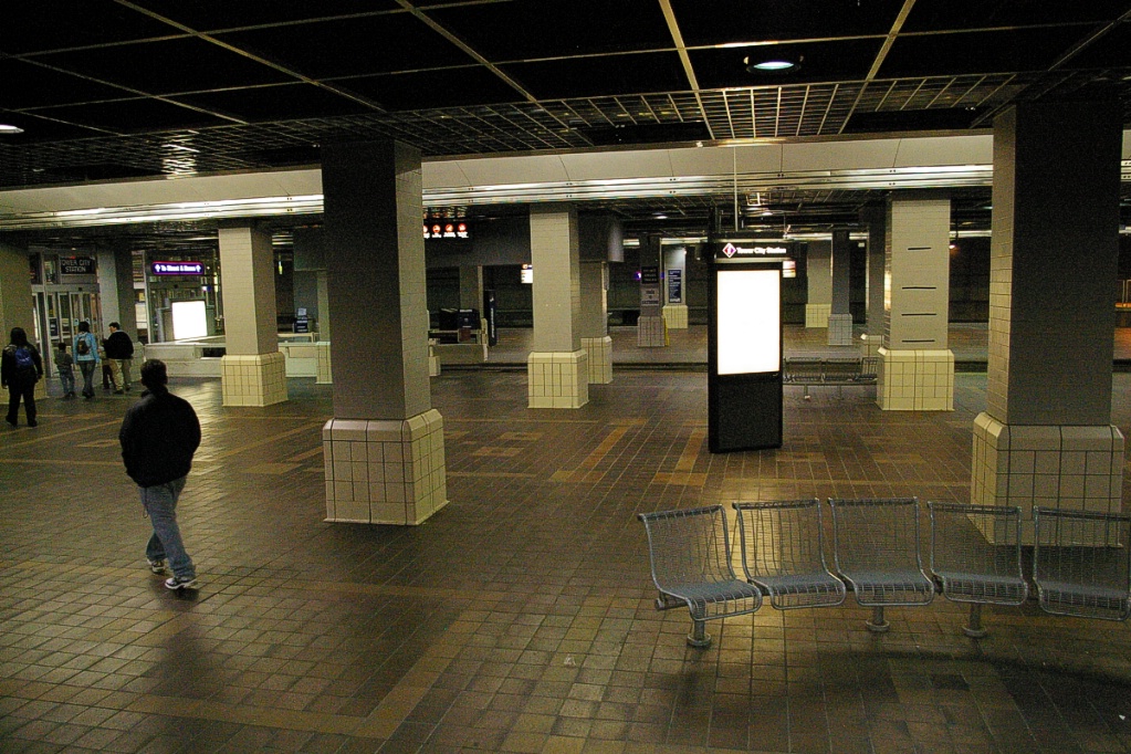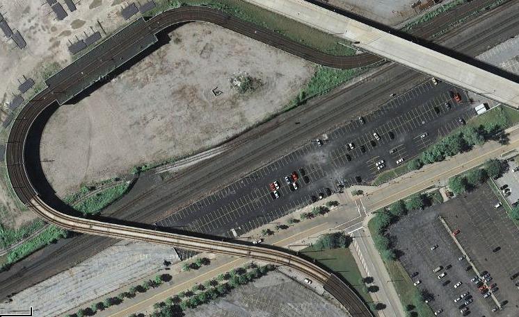 Though the station is under the Tower City complex, the line is not actually underground. In the covered portion, the line makes close to a 90 degree turn to the right to head in a southeast direction. The complex was originally built for railway use, so approaches involve former railway right of ways.