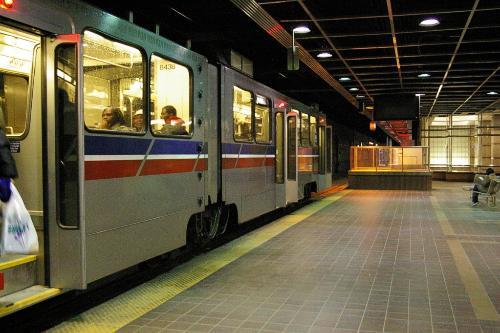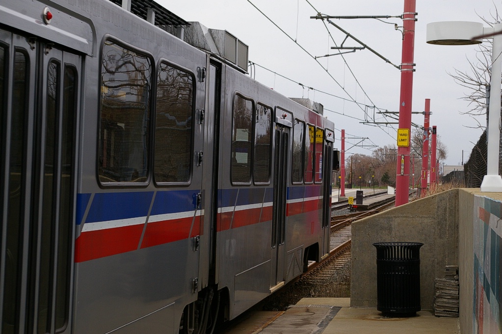 The Red Line is an HRV (metro, pantograph-powered) line that shares three stations and track with the LRT lines. Most of the Red Line is surface or elevated, with the exception of the Airport station which is underground. Cleveland was the first North American city to have rapid transit serving their airport.