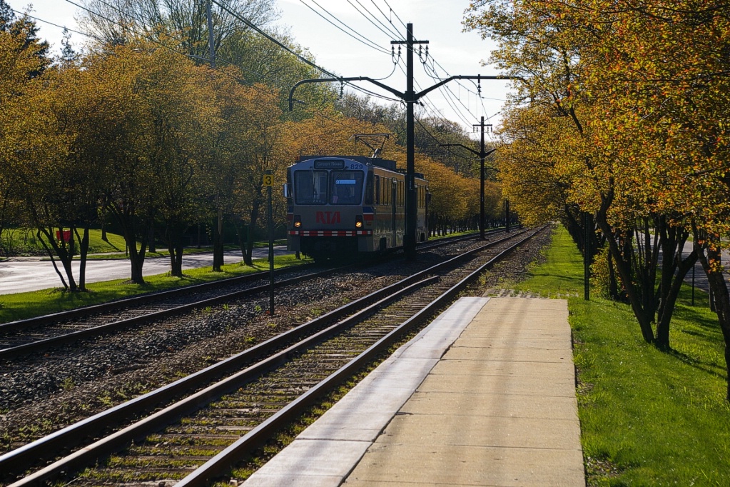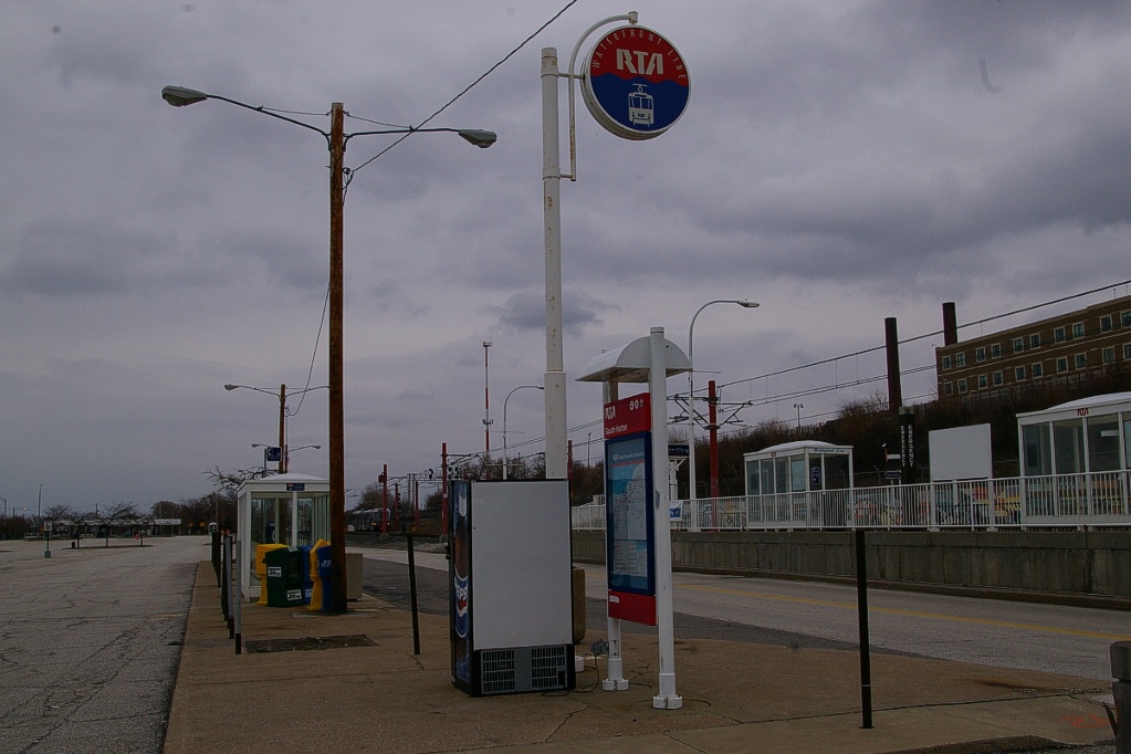 The following stop is Lee, about another 550 metres. This stop has both platforms on the west side of the intersection with Lee Road. This stop has the same name as the station on the same cross street on the Blue Line, which is located about 1.7 km south of this stop.